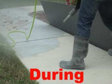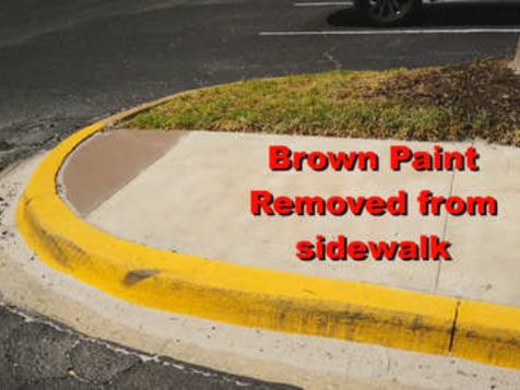 It was a lot less expensive than blasting so Enclave went that route and painted ½ mile of sidewalk a 2nd time. Next time it rained, more guests slipped and fell. Ut oh! They called me up and gave me approval for blasting the sidewalk. But now it had 2 coats of paint on it and not 1. Not knowing what that 2nd coat was like, I went back and did another test blast.